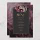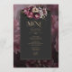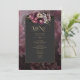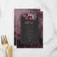 This beautiful, dark and moody floral menu card features a stunning combination of peony, rose, petunia and lilac graphics that you can easily personalize with your own details.