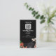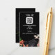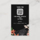 This customizable enclosure card offers a sleek, dark design, perfect for modern or gothic-themed events. Featuring a prominent QR code with instructions to "Scan Me" for RSVP and event details, it adds convenience for guests. The elegant white text is framed by floral accents in warm tones and a subtle spiderweb detail, giving it a unique, sophisticated edge. Ideal for weddings or special events, this card provides an easy and stylish way to direct guests to additional information.