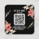 This customizable QR code enclosure card is both elegant and functional, perfect for modern weddings or events that require a streamlined RSVP process. Set against a deep black background, the card features a bold “SCAN ME” message above the QR code, making it clear and easy for guests to use. Soft floral accents in shades of blush, cream, and green frame the card, adding a romantic touch that complements the dark, sophisticated design. Below the QR code, instructions guide guests to scan with their smartphone for RSVP or additional event details. This enclosure card is ideal for couples looking to blend convenience with a stylish, memorable design.