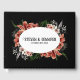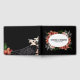 This elegant wedding guest book features a customizable design that allows you to add the couple's names and wedding date for a truly personal touch. The cover showcases a dramatic black background, accentuated by a beautiful floral arrangement with shades of coral, white, and green. The flowers surround an oval frame where the names and date are displayed in a classic, vintage-inspired font, giving it a romantic yet bold look.