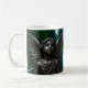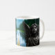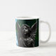 Dark angel statue with glowing eyes on a reflective forest road, gothic fantasy mug, perfect unique gift.