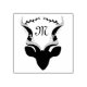 Silhouette of a black antelope, it illustrated with special attention to the male twisted horns with vines wrapping around them. The image is from the front is done in black and grey. With changeable text that says, "M" short for monogram.