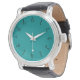 Like any great piece of jewellery, this watch with a dark aqua-coloured face featuring black numerals will go with nearly any ensemble.
