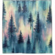 Bold dark aurora night forest pattern shower curtain with vivid watercolor lights—ideal for nature lovers and dramatic winter theme.