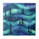 Bold dark aurora night forest pattern ceramic tile with vivid watercolor lights—ideal for nature lovers and dramatic winter theme.