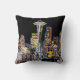 Dark be the Night - Luminous Seattle Skyline Throw Pillow
