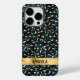 Design with dark blue background and gold speckles, creating a glamourous leopard background. A trendy and Modern Look for any season, with rich, dazzling colour palette : navy blue, gold, and black, with a chic popular brush Monophone Bold Font - Monogrammed phone case!