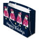 Dark Blue And Pink Snowman Large Gift Bag