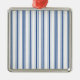 Dark Blue and White Mattress Ticking Narrow Stripe Metal Ornament
