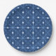 Fun paper plates for the winter holiday season, decorated with a dark blue snowflake pattern.