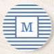 Get a cute simple modern dark blue and white stripped coaster with your custom monogram name or initials, to your cozy home or office! Made with sandstone. Customize it with your favourite font and colour to make it your one and only happy coaster!