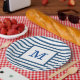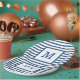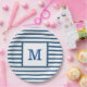 Dark Blue and White Stripes Custom Monogram Paper Plate