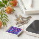 A pretty square, silver-effect Keyring, with a pattern of bright flowers in purple, turquoise, pink and orange on a Midnight Blue background, from a handpainted paper collage by Judy Adamson. You can easily change the background colour, if you wish, by using the Edit button.