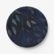 Dark Blue Botanical Leaves Modern Chic Wedding Paper Plate