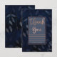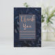 Dark Blue Botanical Leaves Modern Pink Thank You Invitation