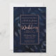 Dark Blue Botanical Leaves Modern Pink Wedding Invitation