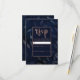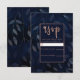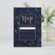 Dark Blue Botanical Leaves Rose Gold Wedding RSVP Card