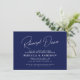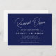 This simple wedding Rehearsal Dinner invitation features elegant script text on a dark blue background.