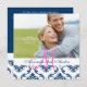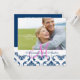 Dark Blue Damask Monogram Photo Wedding Invitation