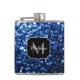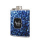 Dark Blue deep shiny faux glitter sparkle Monogram Hip Flask