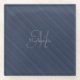 Dark Blue Diagonal Stripes Custom Monogram Name Glass Coaster