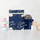 Dark Blue Elegant Merry Christmas White Poinsettia Wrapping Paper