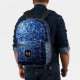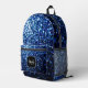 Dark blue faux glitter sparkles Monogram Printed Backpack. Cool fashion accessory bag for her. Beautiful girly glamourous blue shiny glitters sparkles design. Photo of sparkles, not real glitter! Create a unique and personalized backpack with a custom touch! Modern monogram with your initial and your name for that extra personal flair.
