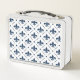 Dark blue Fleur De Lis pattern on white background Metal Lunch Box