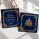 Dark Blue Floral Frame Islamic Muslim Engagement Invitation
