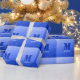 Dark blue ombre geometric mesh pattern Monogram Wrapping Paper. Gift Wrapping Supplies for anyone. Monogrammed and Personalized with your custom initial and name. Blue ombre gradient with geometric mesh pattern triangles modern design.