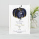 Dark Blue & Gold Pumpkin Storybook Fall Wedding Invitation