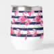 Introducing our Dark Blue Grunge Stripes Pink Flamingo Monogrammed Thermal Wine Tumbler, a stylish and practical accessory for your summer sips. With its dark navy blue grunge stripes and vibrant pink flamingo design, this tumbler brings a touch of tropical elegance to any occasion.
