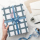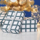 Dark Blue Lace Windowpane Squares on White Wrapping Paper