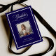 This formal and modern class of 2026 graduation announcement features a dark blue background with a classic white frame. A photo of the grad goes in the center, and elegant fancy calligraphy script says "graduate" at the top. A luxe, sophisticated look for the adult grad.