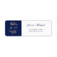 Navy blue background. Bride's and Groom's monograms with golden leaves. Sleek and modern wedding design.