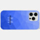 Dark blue geometric mesh pattern Monogram iPhone 15 Case. Personalize with your custom initial and name. Triangle geometric mesh with light to dark blue ombre gradient.