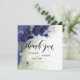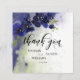 Elegant and artistic Thank You calligraphy design featuring a stunning watercolor dark blue orchid flower and watercolor green and dark blue colour splash in the background.