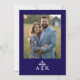 Dark Blue Ornate Christian Cross Minimalist Wedding Save the Date Cards with Initials and Back Photo.