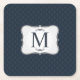 Dark Blue Pattern – Classy Men’s Monogram Square Paper Coaster