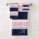 Dark Blue & Pink Stripes Bath Towel Set