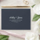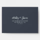 Chic, modern and simple self-addressed RSVP envelope with your names in white elegant handwritten script calligraphy on a dark blue background. Perfect for your wedding! Simply add your names and address. Exclusively designed for you by Happy Dolphin Studio.