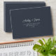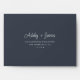 Chic, modern and simple self-addressed RSVP envelope with your names in white elegant handwritten script calligraphy on a dark blue background. Perfect for your wedding! Simply add your names and address. Exclusively designed for you by Happy Dolphin Studio.
