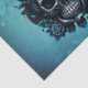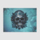 Dark blue skull with roses. Impressive, stylized skull in a deep, rich dark blue that is reminiscent of the night. The contours of the skull are clearly defined and give it a mysterious aura. The eye sockets are deep black and radiate a mysterious intensity. This design conveys a powerful message of life and death, beauty and transience