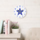Modern design with a "shining" blue and white star on a white background. Wall clock with a customizable design for you to personalise with your own text, images and ideas. Please note that this is a printed image created using original photographs and digital techniques, it does not shine or contain real sparkles.