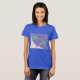 This dark blue T-shirt is designed with a paper art depiction of an island scene with palm trees, umbrellas, a blue ocean, and a red sailboat.