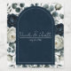 Dark Blue & White Modern Floral Greenery Wedding Wine Label