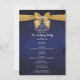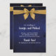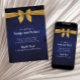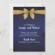 Stunning dark blue background tied with a gold bow image. Stationery is all printed, no actual ribbon. Personalize our gorgeous stationery with your event details easily and quickly, simply press the customize it button. Coordinating backside is included. Matching items to complete your event collection are available in our Zazzle store!