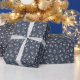 Dark Blue with White and Green Floral Pattern Wrap Wrapping Paper
