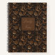 Pretty spiral journal features a digital art pattern of dark bronzed flowers and leaves, created with AI software. Personalize with name or other text in centre square