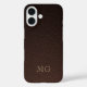 Dark Brown Faux Leather and Gold Monogram Initials Case-Mate iPhone Case